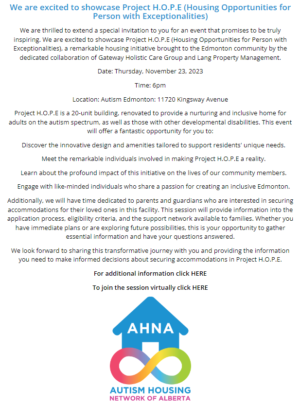 • Autism Housing Network of Alberta (AHNA)